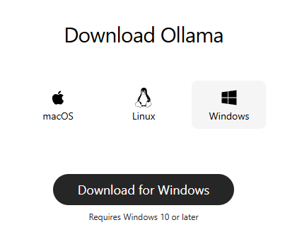 일단 ollama 를 설치한다 https://ollama.com/download 에서 다운로드 받을 수 있고, 난 windows 에서 사용할거니 windows 용을 받는다.