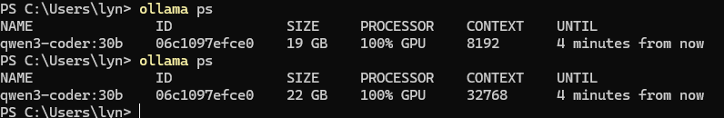 3090 한개라면 32k 까지가 한계고, 나처럼 2개를 연결했다면, qwen3-coder 30b 가 제공하는 최대 사이즈인 256k 까지 사용 하는게 가능하다고 보면 된다. 만약 Mac 을 쓴다면 통합 메모리 중 gpu 에 줄 수 있는건 최대 50% 이니, 최소 사용량의 2배 이상을 구매하여 장착 해야된다고 보면 된다.